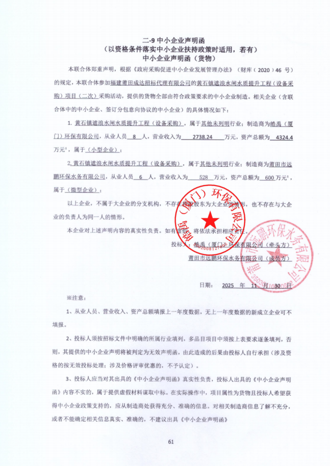 附:中小企业声明函